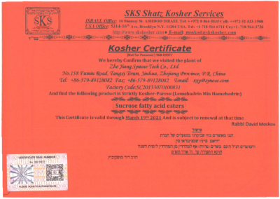 公司被評(píng)為“國(guó)家高新技術(shù)企業(yè)”,并有多個(gè)產(chǎn)品獲得“國(guó)內(nèi)發(fā)明專利”,通過了FSSC22000食品安全體系認(rèn)證,ISO14001環(huán)境管理體系,MUI HALAL認(rèn)證,SKS KOSHER認(rèn)證,ISO9001質(zhì)量管理體系和ISO22000食品安全管理體系認(rèn)證,并有多個(gè)產(chǎn)品通過了“歐洲REACH法規(guī)”注冊(cè)和“韓國(guó)REACH法規(guī)” 預(yù)注冊(cè)。